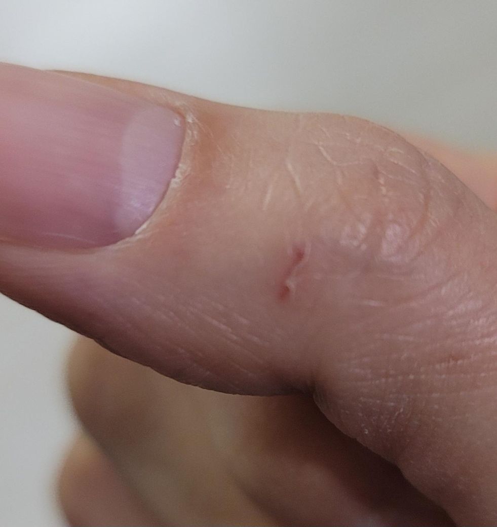 그러나 상처가 깊진 않기 때문에 흐르는 물에 씻고 소독과 상처 연고를 잘 바른 후 이상 증상이 생긴다면 병원 진료를 받기 바랍니다.
