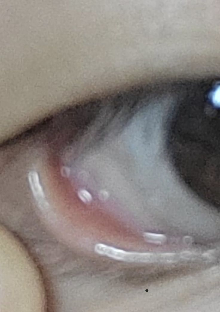 결막은 눈꺼풀결막과 안구결막으로 나뉘게되며 현재가르키는쪽은 눈꺼풀결막입니다. 특이소견은없으니 걱정없이 지내십시오