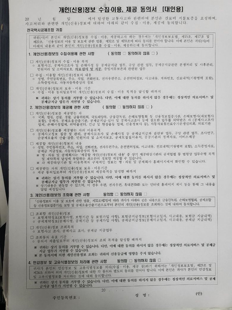 저건 보험금 지급을 위한 대인처리용 동의서이므로 상관없습니다.