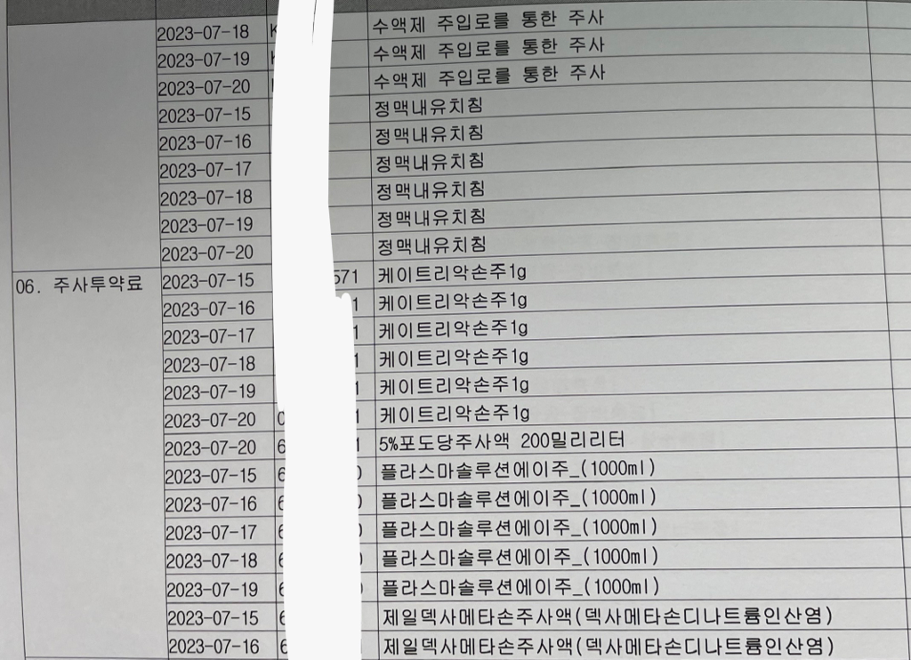 정말 걱정 되는건 제가 주말부터 쭈욱 수액을 맞았는데 ( 중간중간 항생제 주사도 들어갔다고 했어요 )