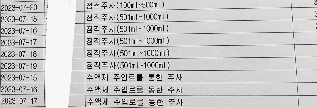 수액은 오늘 오전까지 맞고 지금은 퇴원했어요!