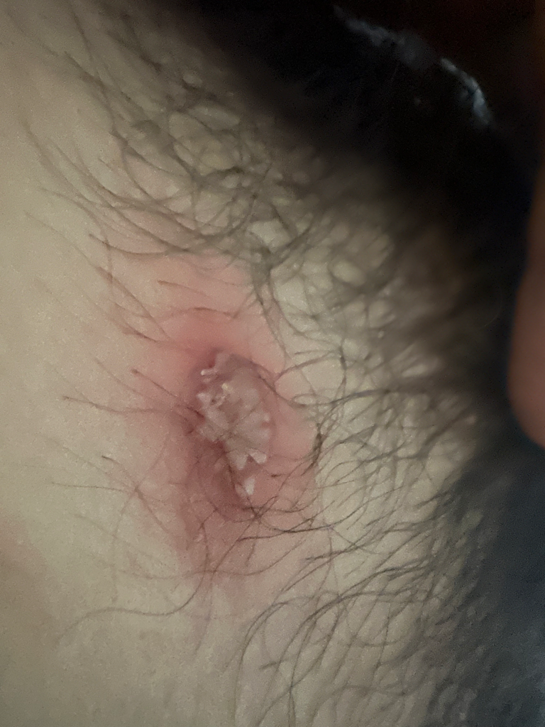 사진에 보이는 병변은 수포보다는 곤지름에 가까워보입니다. 정확한 진단은 피부과나 비뇨의학과에서 받으시는게 맞겠습니다.