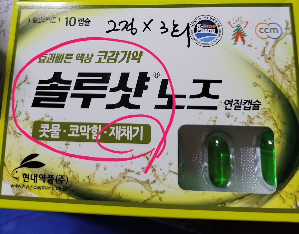 약국에 가서 "솔루샷 노즈 "라는 약을 받아왔습니다.!