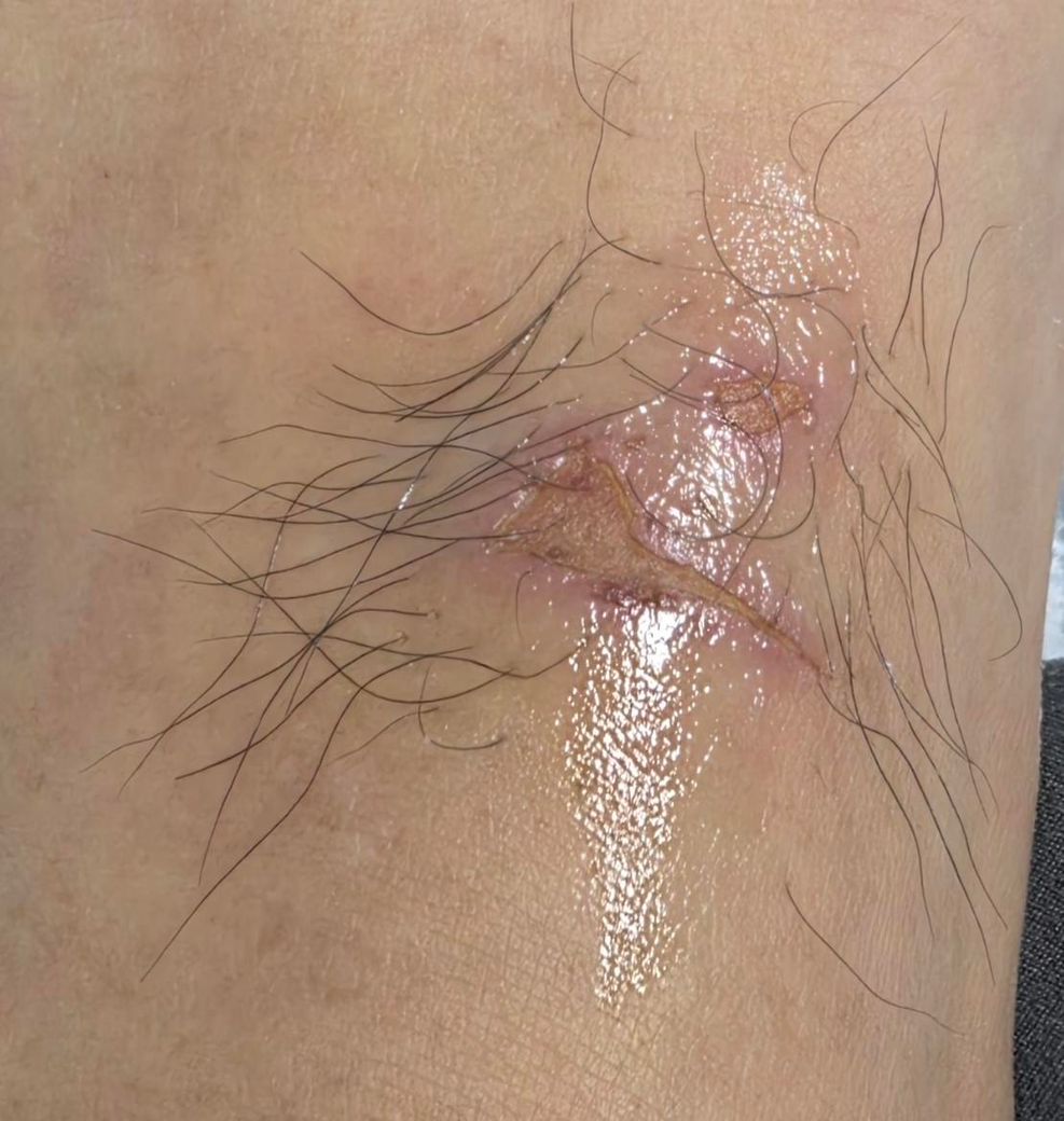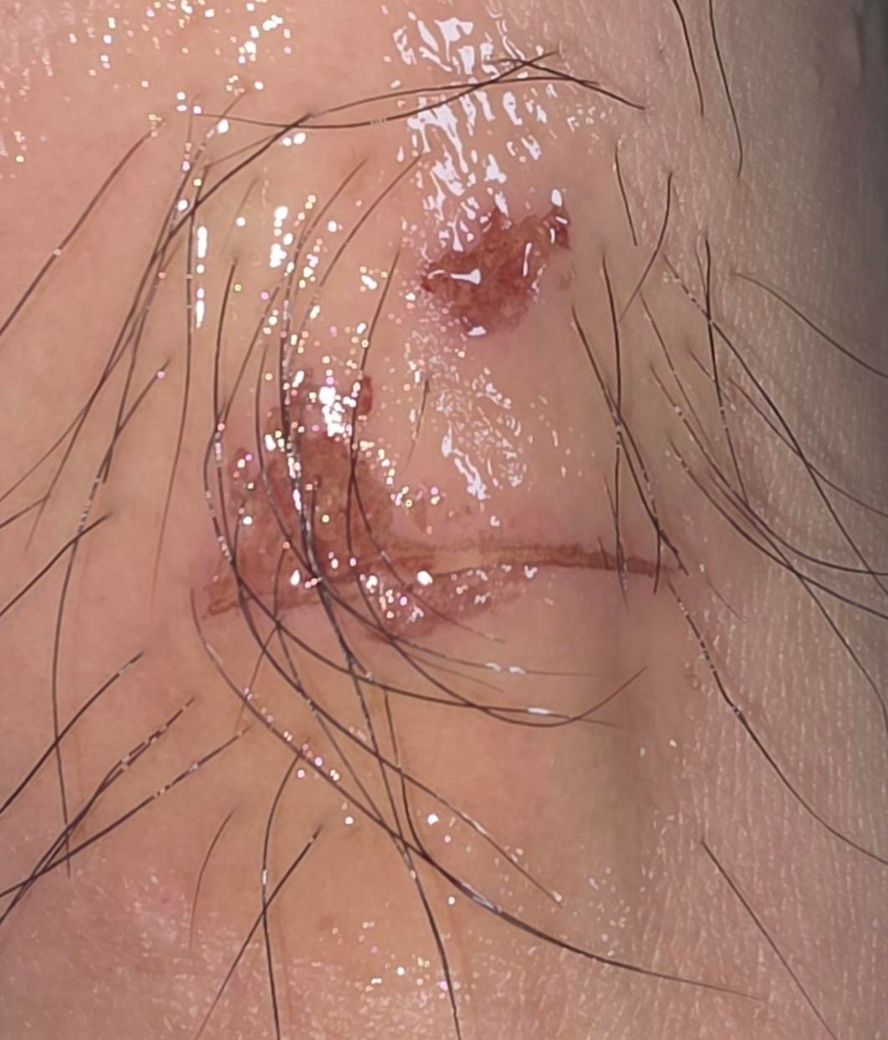 연고를 발라서 그런지 빛반사로 정확히 상처를 파악하기가 힘듭니다. 가까운 외과계열 병원으로 방문하는게 좋겠습니다