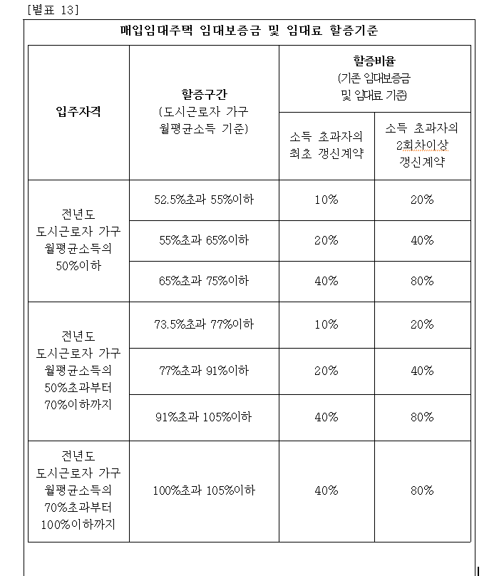 일단 여기서 말하는 공공주택업무처리 지침 별표13 '매입임대주택 임대보증금 및 임대료 할증기준'
