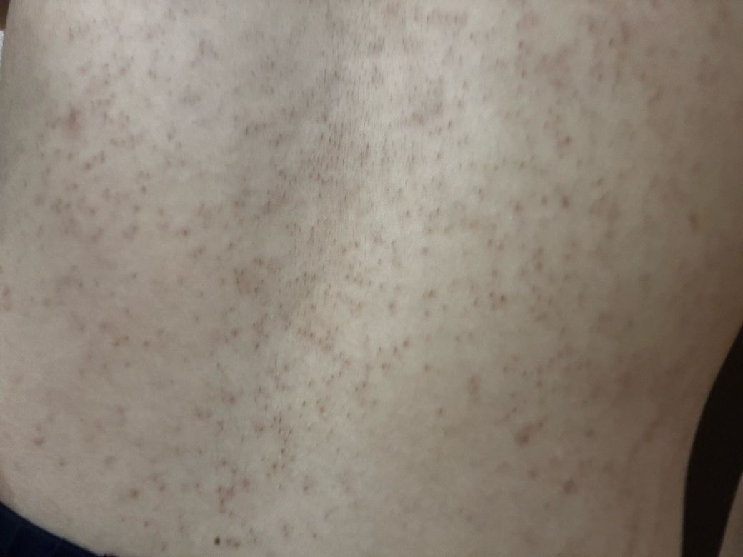 사진에서 보이는 병변은 모낭을 중심으로 작은 붉은 구진들이 다수 분포하는 형태로, 단순 여드름보다는 모낭염과 모공각화증이 함께 존재하는 양상으로 판단됩니다. 특히 등과 팔은 비교적 오래 지속되었고 균일하게 퍼져 있는 점에서 모공각화증의 특징에 가깝고, 엉덩이는 붉고 염증성 병변이 많아 세균성 모낭염이 동반된 상태로 보는 것이 타당합니다. 모공각화증은 각질이 모낭 입구를 막으면서 발생하는 만성 질환이고, 모낭염은 세균, 땀, 마찰 등의 영향으로 모낭에 염증이 생기는 질환으로 사춘기 이후 피지 분비 증가와 함께 흔히 악화됩니다.