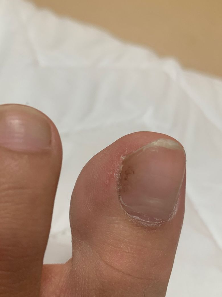 가늘게 자랄 수가 없으며 점이 커지면서 손, 발톱을 침범하여 밀어내기 시작하거나 불분명한