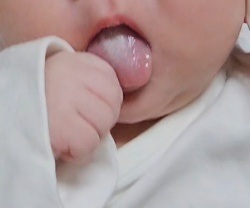 아기가 울 때 종종 혀끝이 w모양이 돼요.