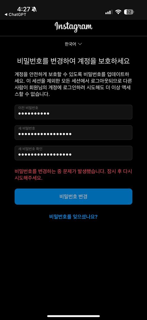 비밀번호 변경을 눌러도 지금은 안된다고 뜨고… 비밀번호를 잊었습니다 를 눌러도 지금은 안된다고뜨고 핸드폰으로 코드를 보낼려해도 잠시후 이용하세요 라고만 떠요. 그래서 본계로 들어갈려하는데 본계를 들어갈수가없어요 ㅜㅜ