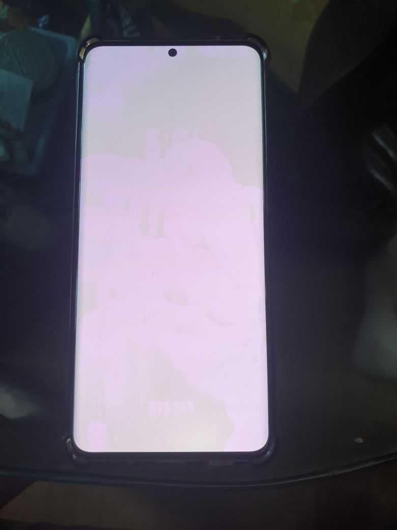 옅은 연두색 바탕에 흐릿하게 글자나 숫자 등이 보이는 상태로 다른 기능을 정상인것 같습니다. 카톡이 오면 화면이 연두색이 되고 화면이 안보여서 그렇지 빅스비로 전화도 걸립니다.