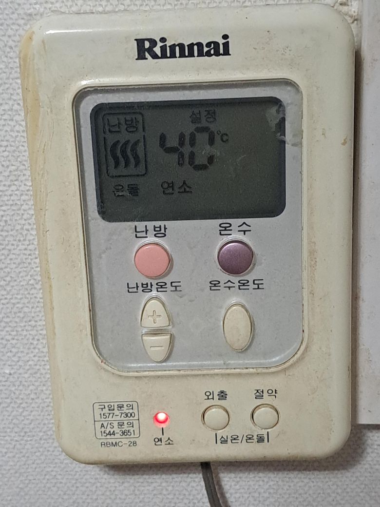 보일러 온도 조절기가 실내온도를 나타내는 기종도 있고,사진처럼 보일러의 온도를 나타내는 종류도 있습니다.