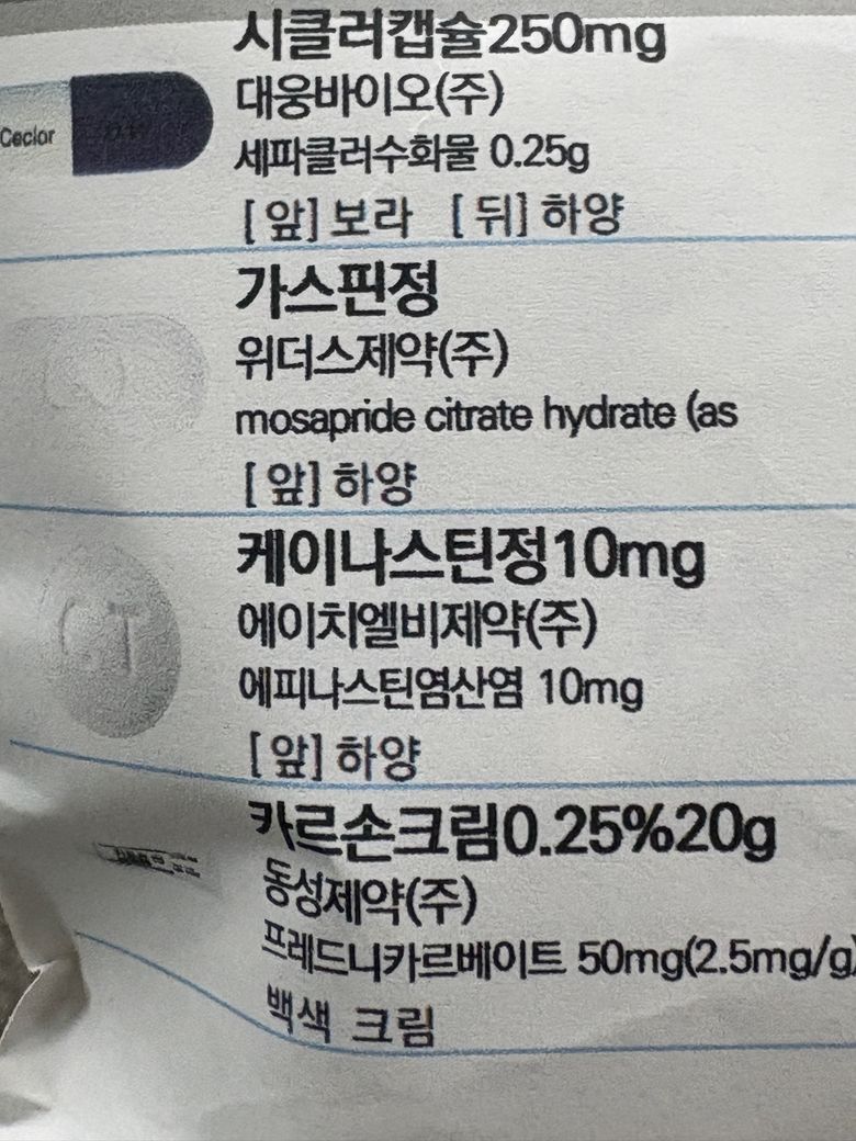 피부과 처방약인 시클러캡슐 250mg / 가스핀정 / 케이나스틴정과 레보세티리진 성분의 항히스타민제인 씨잘정은 함께 복용하셔도 특별하게 문제가 되는 약물-약물 상호작용이 없으며, 같이 병용하도록 처방되는 경우도 있는 약들입니다. 따라서 피부과 처방약 복용 중 씨잘정을 추가로 복용하셔도 괜찮습니다. 또한, 카르손 크림 사용도 씨잘정 복용에는 영향을 주지 않습니다.
