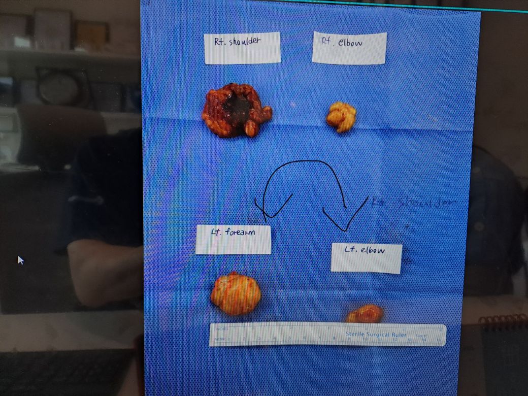 첫번째 왼쪽에 있는게 조직검사한 지방종이라고 합니다.