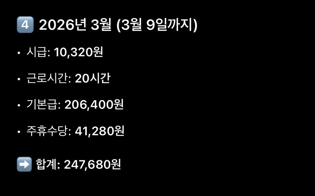 3월은 10320 주휴 2064