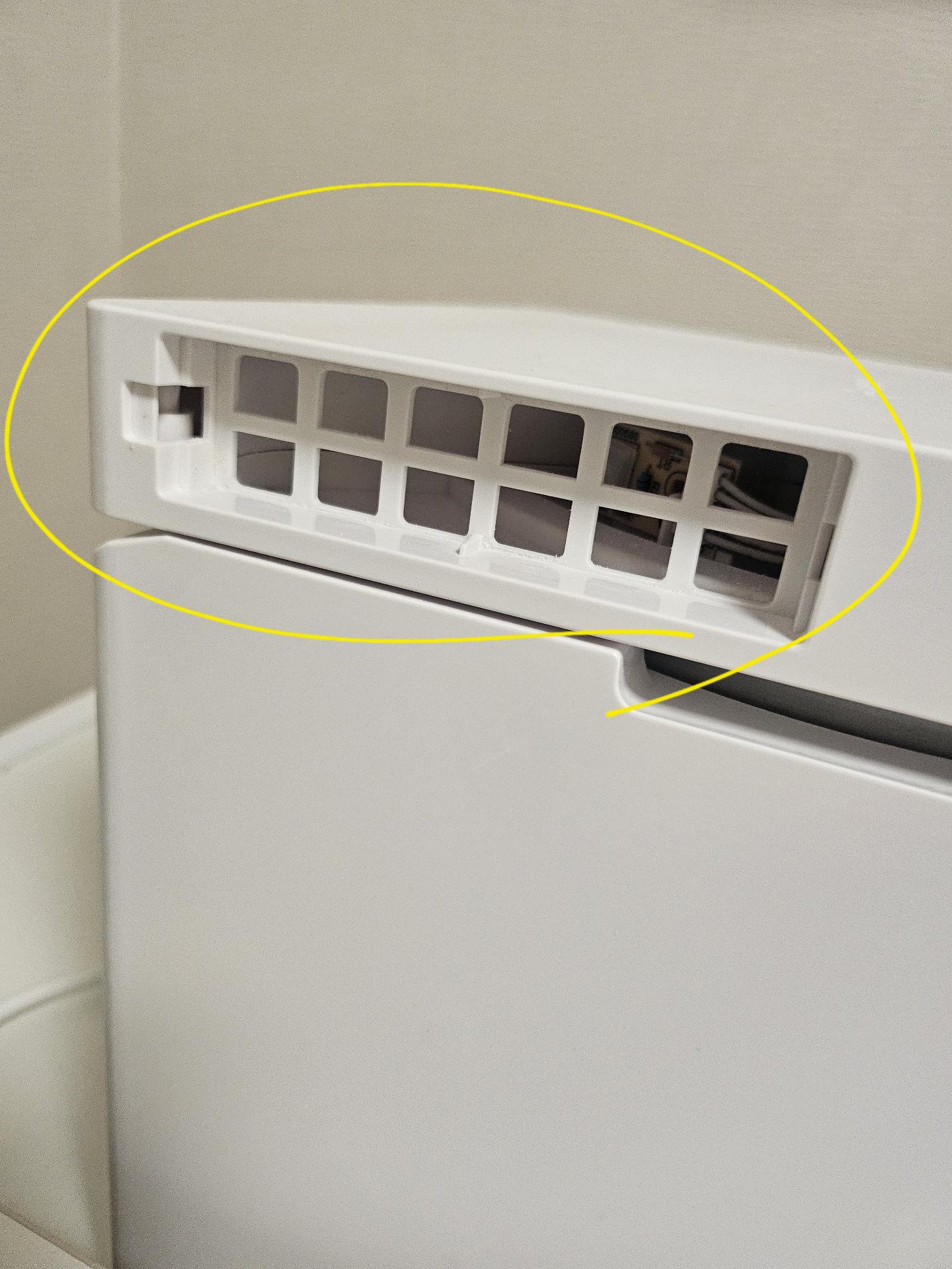 사진의 동그라미 부분은 Carepod X50V의 흡입구 먼지 필터로, 물과 직접 연결되지 않아 석회가 바로 가습되어 몸으로 들어가지는 않습니다. 다만 지역 수질이 경수이면 내부 수조·가열부에 석회가 쌓일 수 있어 가습 성능 저하와 분무 불균형이 생길 수 있습니다. 필터는 물세척 후 완전 건조해 재사용하면 되고, 물은 정수·연수 사용을 권장합니다.