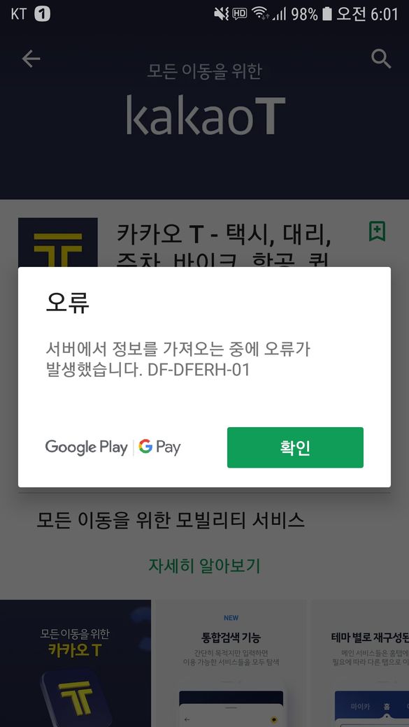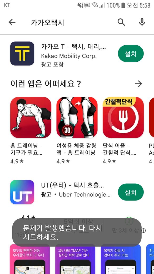 S7 카카오 T (택시) 앱 설치 오류 .