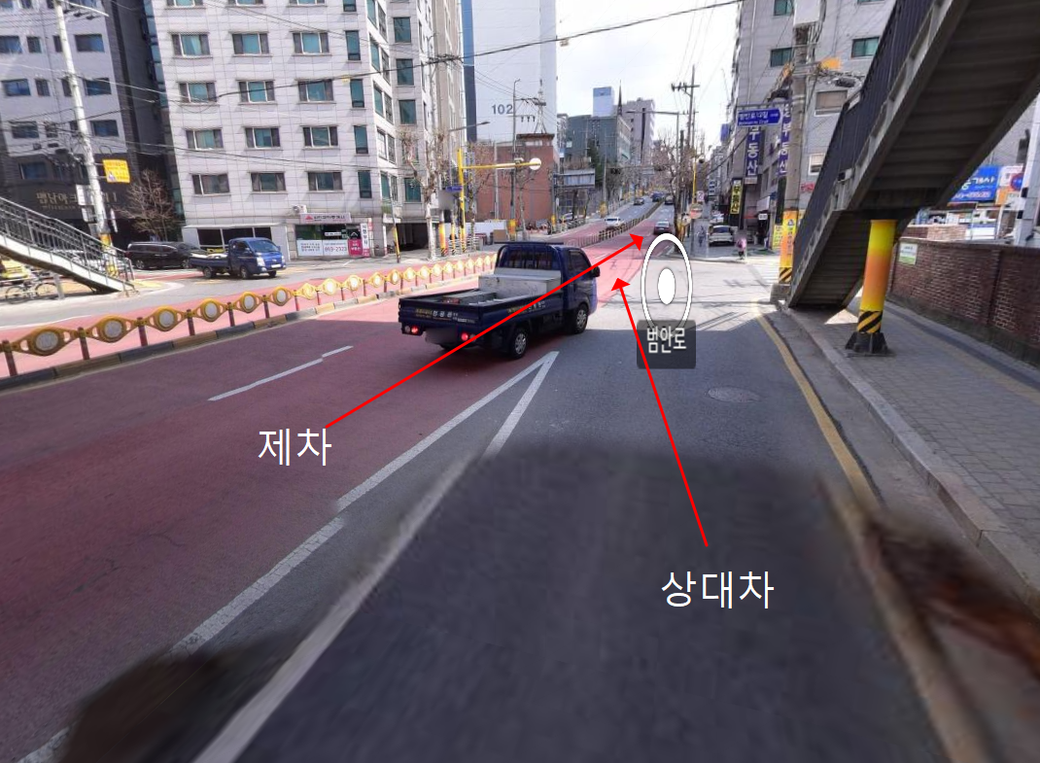 양차량의 파손부위를 고려하게 되며, 합류차선측의 차선에 방향지시표시가 있는지등을 추가로 고려할 수있습니다.