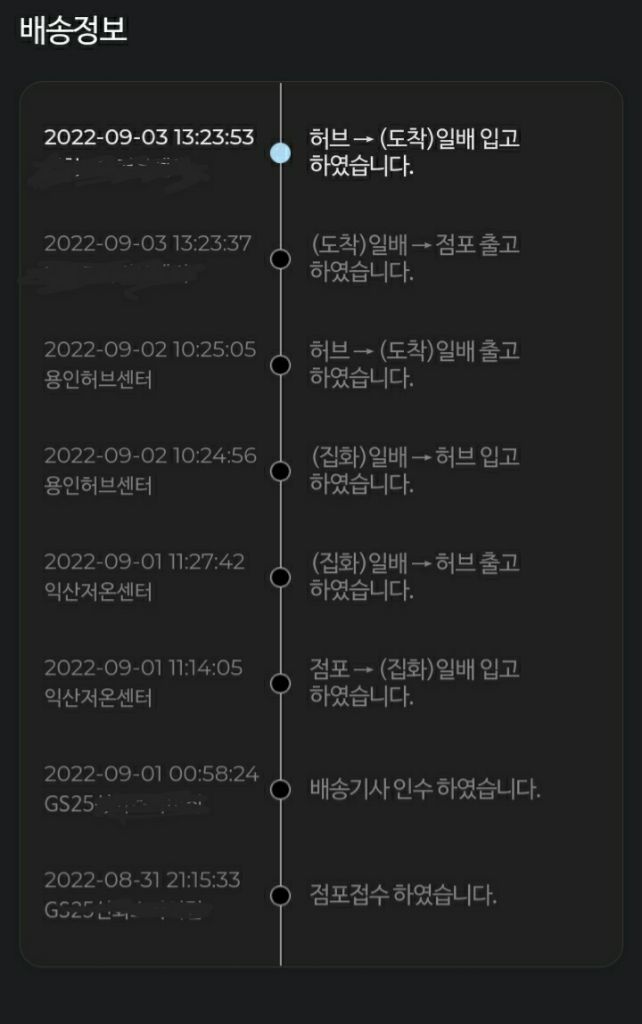 원래 허브 -> 도착(일배) 가 먼저 와야하는거 아닌가요?