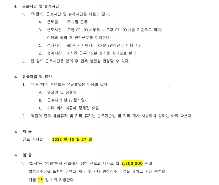 근로계약서 위반사항 확인 부탁드립니다.