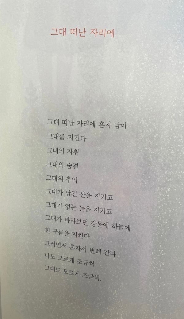 위의 시는 나태주 시인의 <그대 떠난 자리에>입니다.