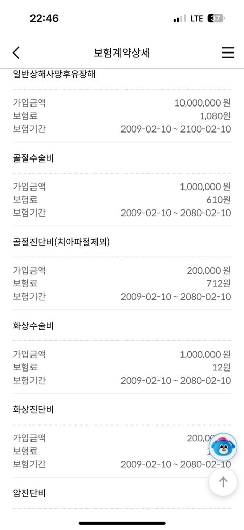 2009년도에 가입한 1세대 실비+종합보험을 가지고 계시네요.