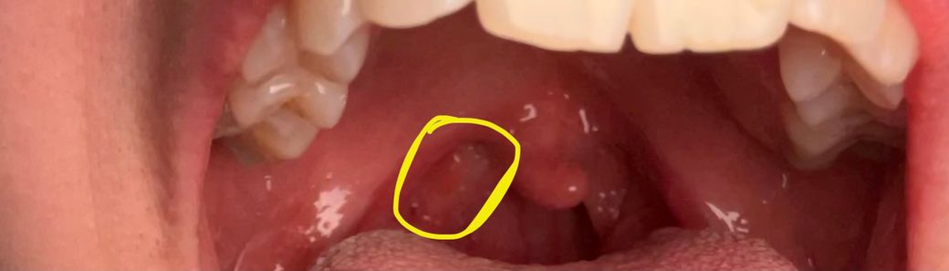 동그라미 친 부분이 편도결석 일까요?