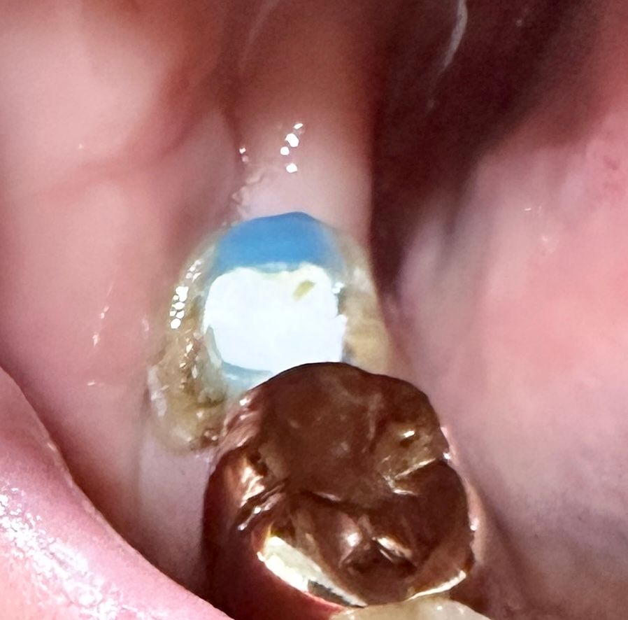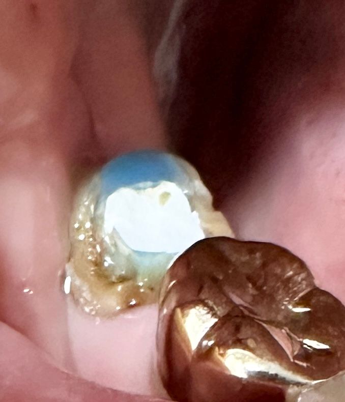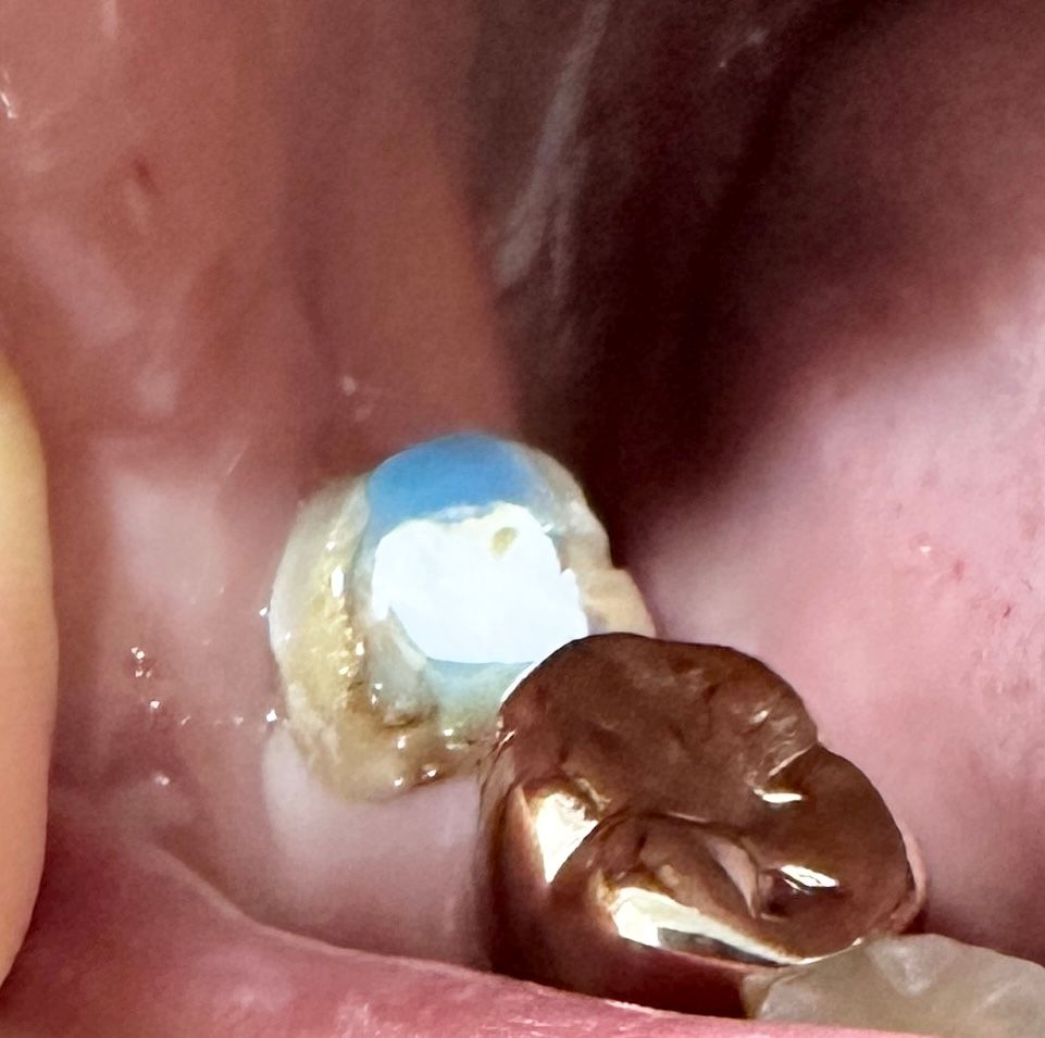 금 벗기고 안에 확인을 하니 어금니옆에 구멍쪽으로 찌꺼기들이 들어갔는지 구취가 날정도로 문제가 있었습니다