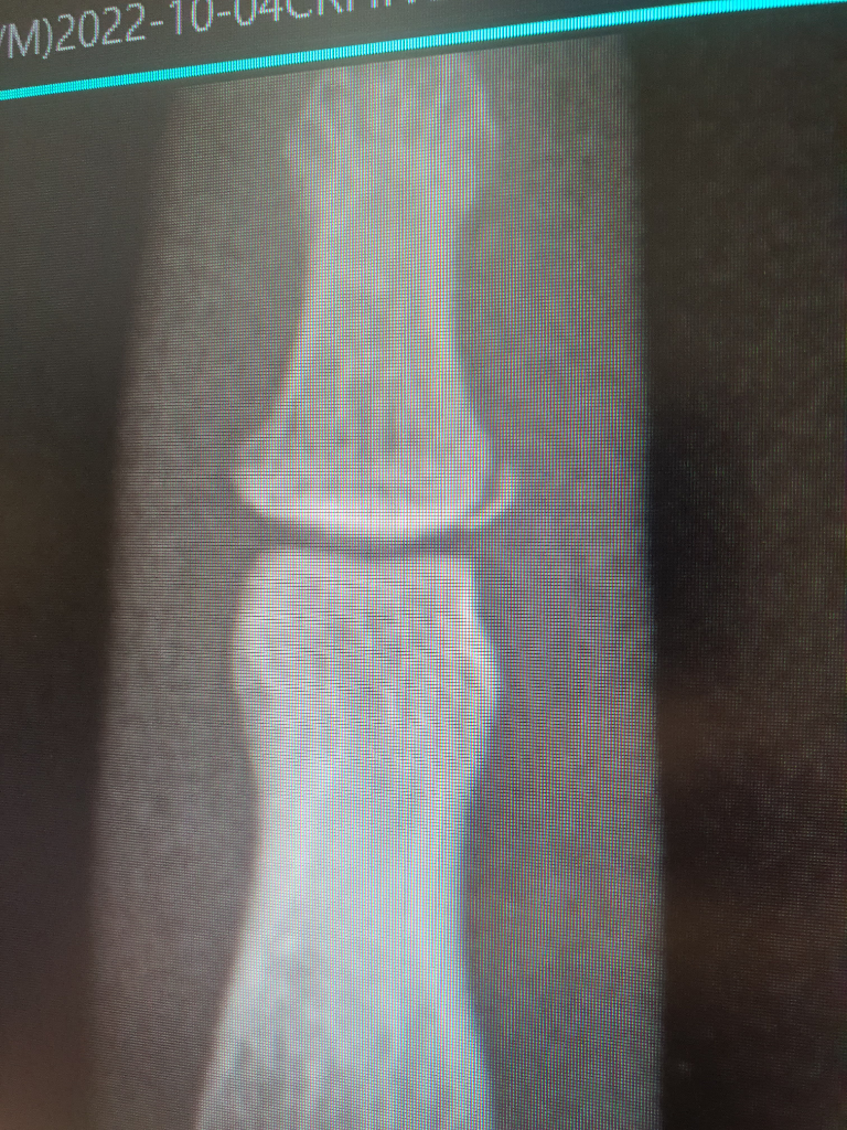 보시는 사진은 어제 촬영한 x ray 사진 입니다. 현재는 통증은 거의 없는 상태이지만 계속 부목을 착용중입니다.
