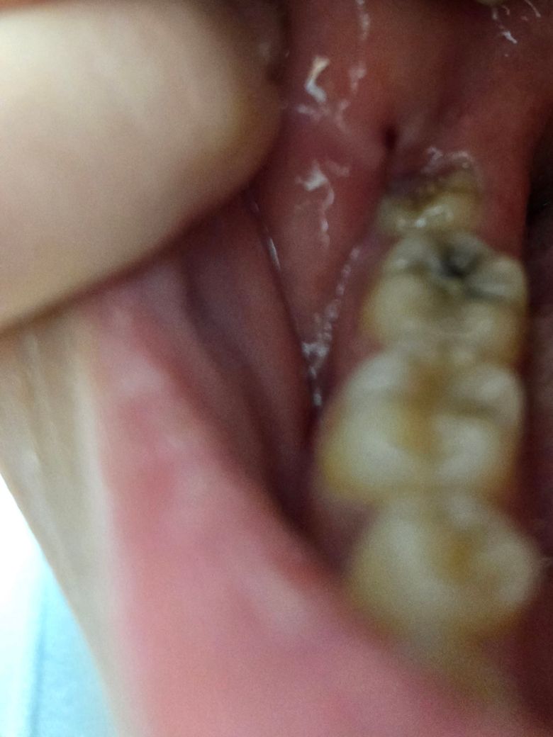 사진처럼 어금니 안쪽? 저부분이 붉은 점처럼 변했는데 심각한건가요?? 너무 걱정됩니다.....