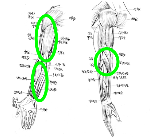 그리고나서 어깨통증이 시작되었는데 처음엔 단순히 상부승모근 부분만 뭉치더니 그다음엔 삼두근 이두근 팔뚝까지 뭉치거나 저린증상이 나타났습니다