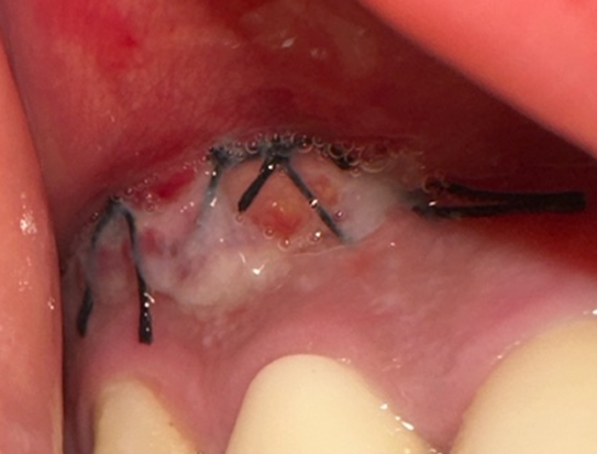 사진과 같이 잇몸을 절개 수술 후에 회복중에 있습니다...
