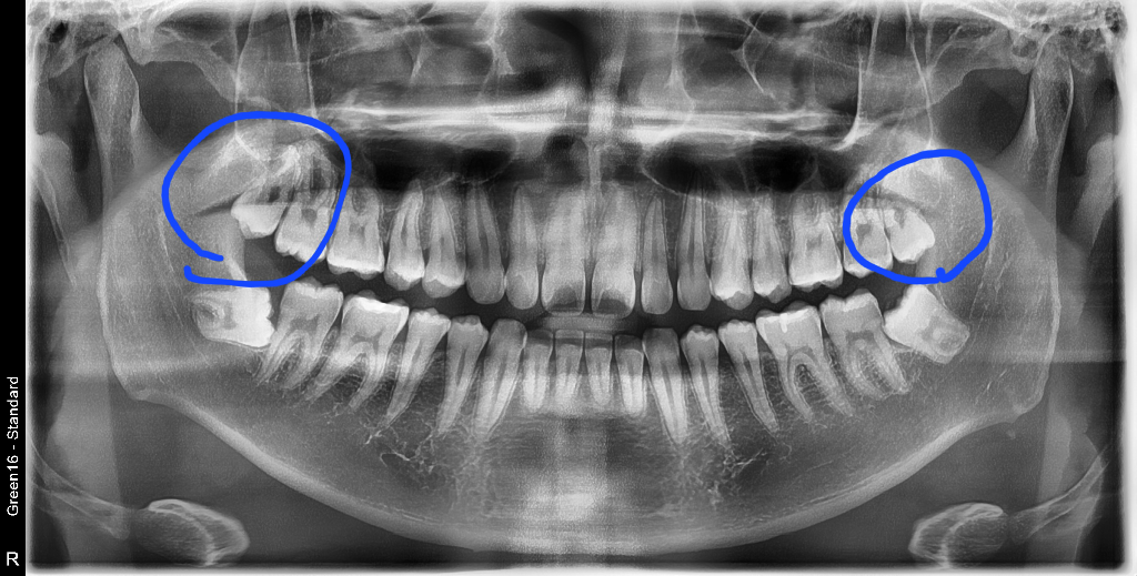 두 사랑니 모두 어려워보이지는 않습니다. 발치 중, 후 통증이 모두 적은 편 일 것 같습니다.
