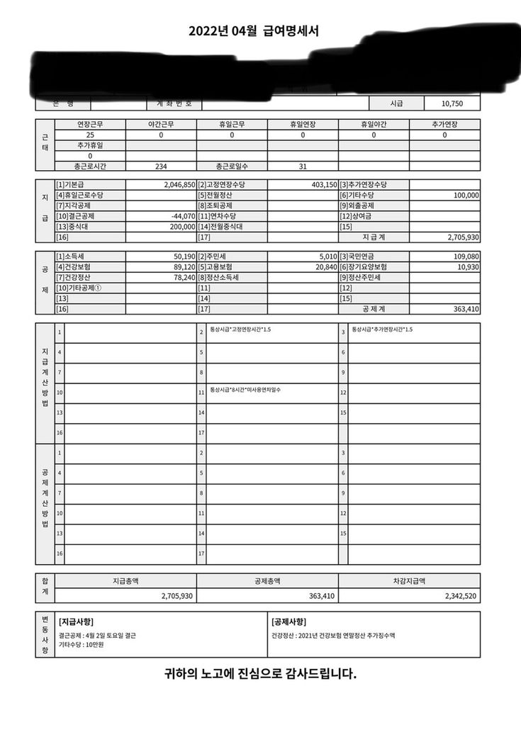 (계약서 작성시기때보다 시급이 더 높아져서 계약서 고정연장수당과 명세성 고정연장수당이 다름은 참고부탁드립니다)