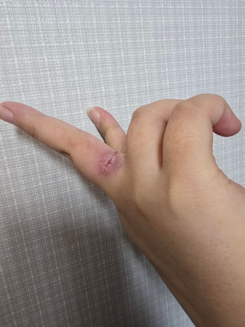 만약, 상처 주변이 점점 더 붉어지거나 고름이나 노란액체가 나온다면, 이땐 바로 병원에 가는것이 좋으며, 이러한 경우에는 빨리 항생제 처방 등의 도움이 필요합니다.