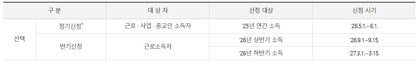 2025년 정기신청을 하였다면 대상이 아니지만, 2025년에 반기신청을 한 경우라면 하반기 소득에 대해 신청기간이 맞습니다.