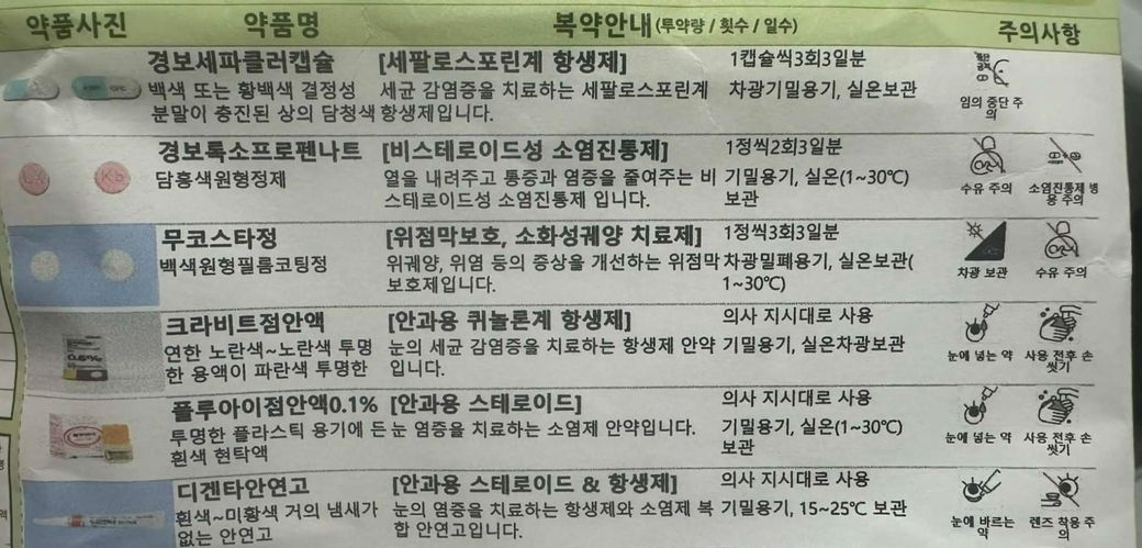 월요일에 다래끼 째고 약 받아서 복용중입니다.