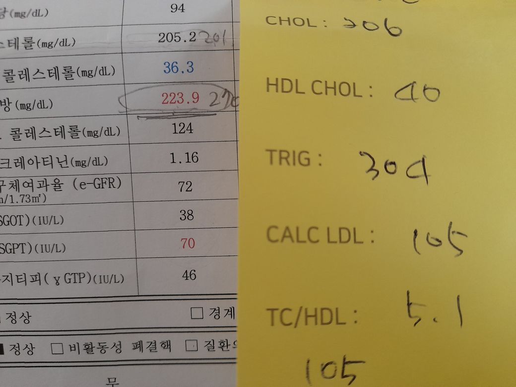또 1년전보다 다른수치들은 나아졌는데 중성지방만 오르는 이유가 있을까요?