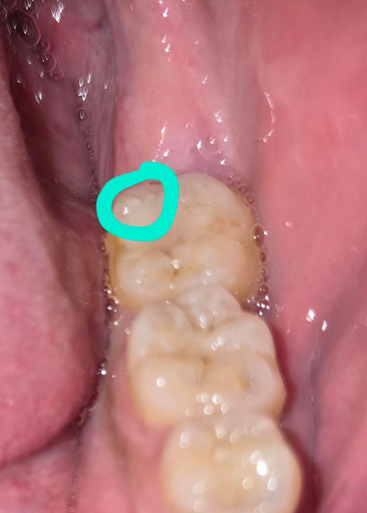 어금니를 빛으로 비추고 봤는데 하늘색 원 안에 흰색 점들이 있더라고요. 빛 반사라고 보기엔 빛 각도를 바꿔도 형태가 모양이 안바뀌어서요