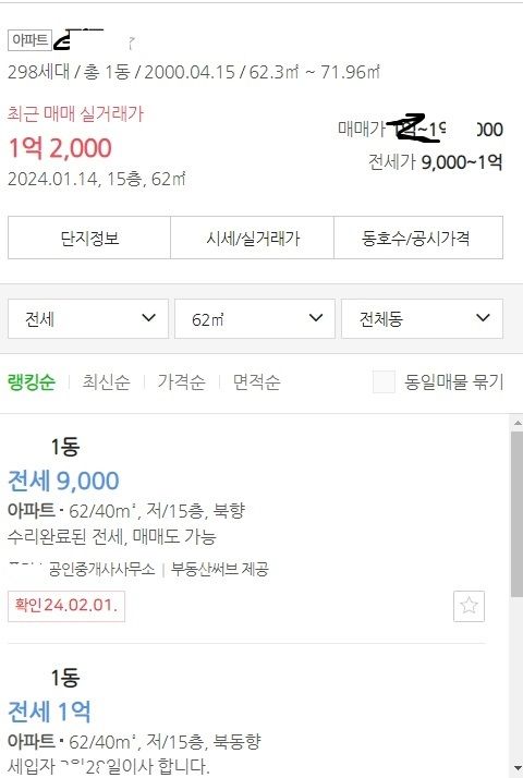 사진처럼 n사이트 부동산 전세매물에 집 매물이 부동산3개에서 중개매물이 각각 올라와 있었는데