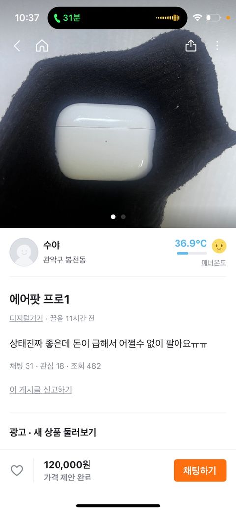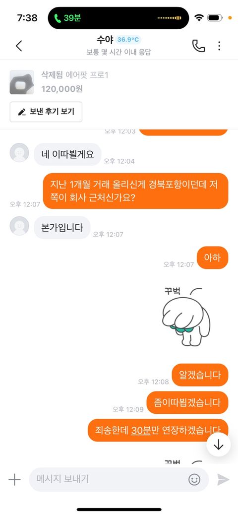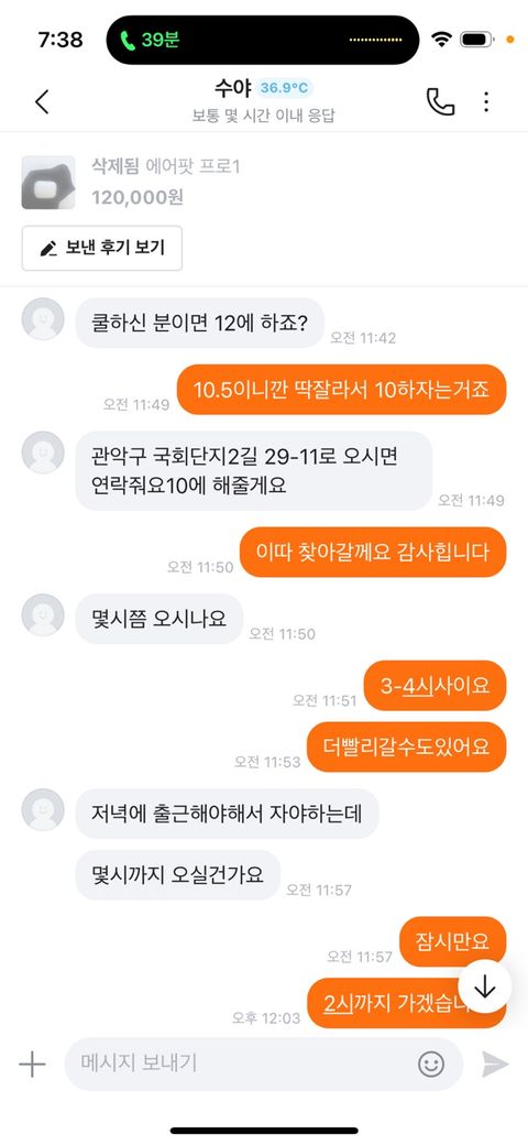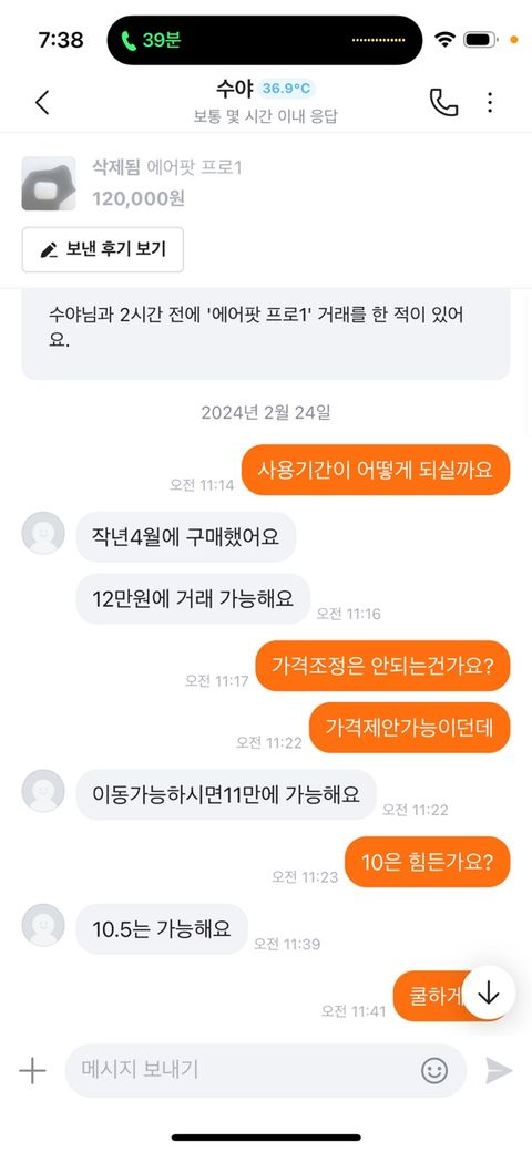 당근에서 물건이 나와서 거래보다 비싸다보니 조율을해서 12만원 제품을 10만원에 거래 하기로 하고