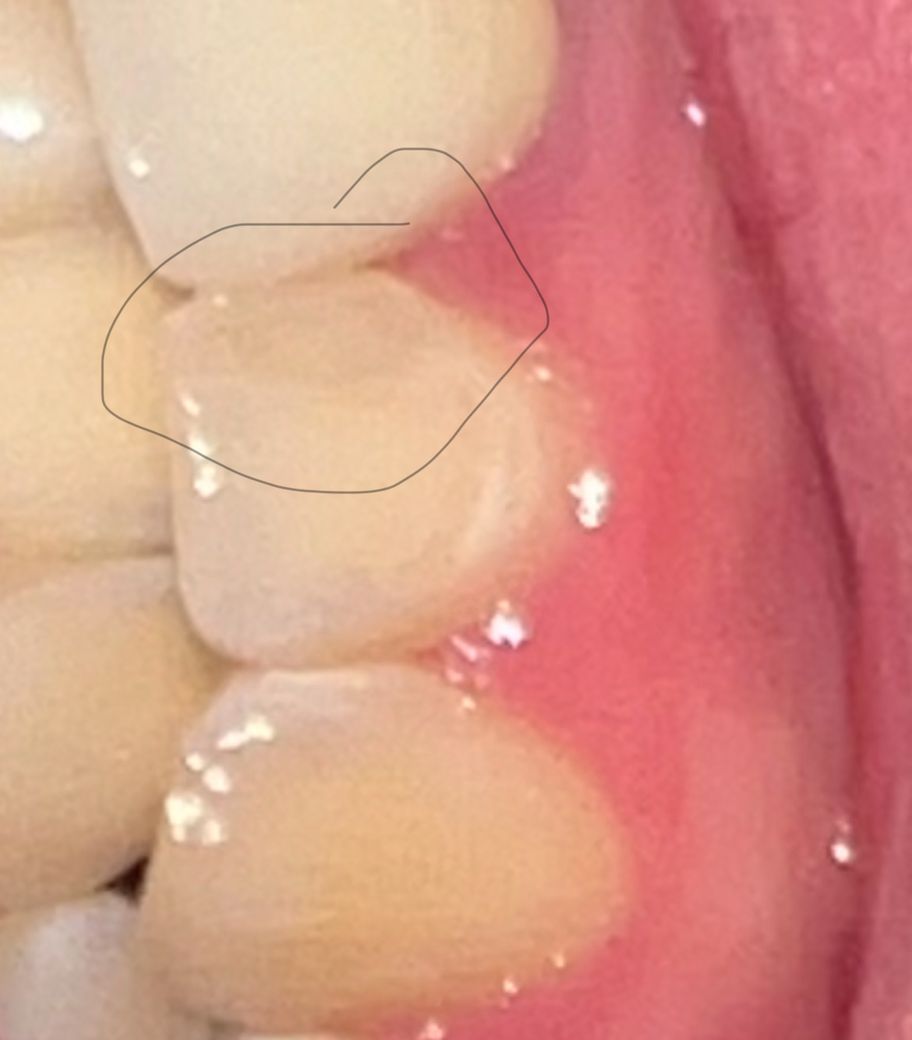 자세히 보시면 반투명하다고 해야할까요치아 뒷면에는 어떠한 반투명상태가 아닌데 앞면만 그렇네요 어느순간 확연히 보이기 시작했습니다