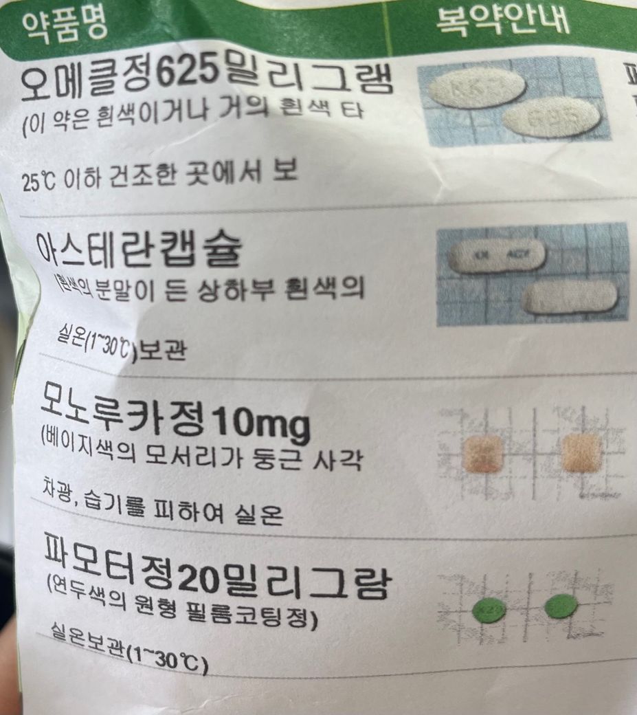 오메클정, 아스테란캡슐, 모노루카정, 파모터정 이렇게 축농증 진단받고 받아온 약인데 왠지 감기 기운이 아주 살짝 있는 것 같아서요 혹시 여기에 감기에 효과 있는 약이 있을까요?