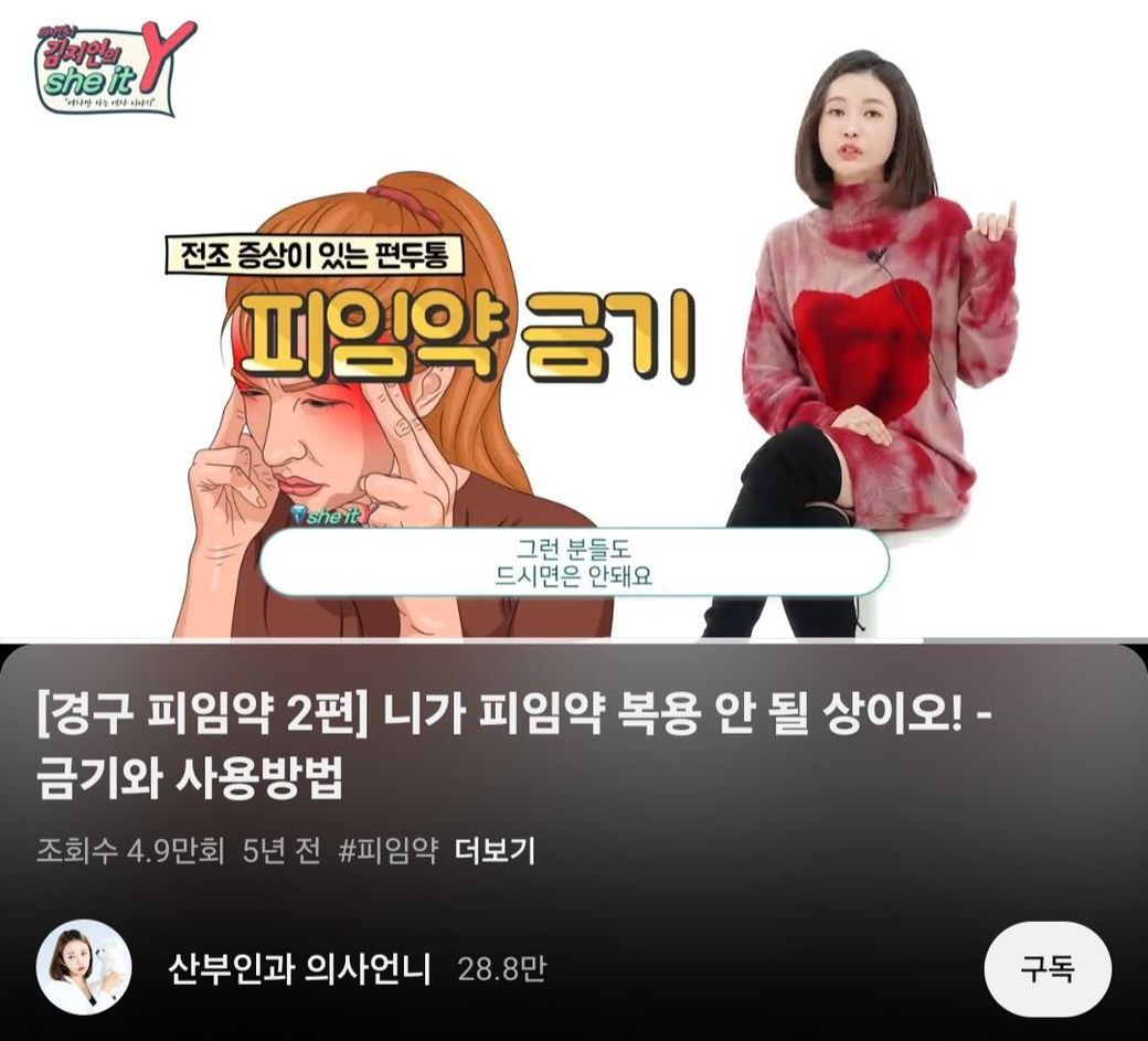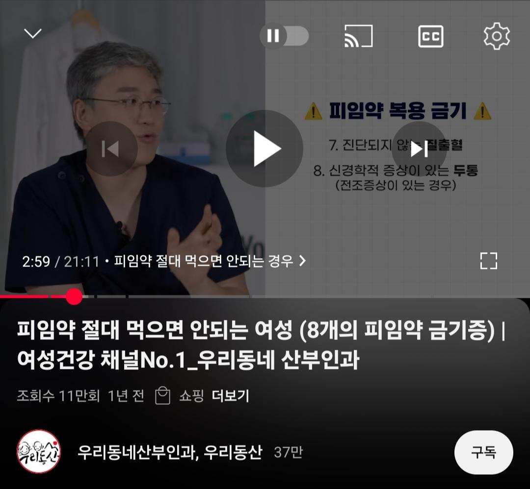 그런데 혹시나 하는 마음에 이리저리 검색하니 이런 영상들을 발견했습니다.(사진 참고;조짐 편두통에는 피임약 처방이 금기이다라는 내용)