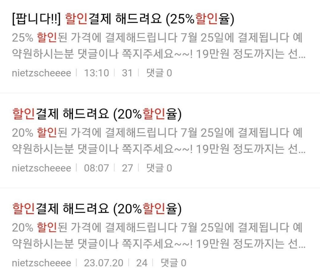 할인결제해준다고 하고 입금받은후 잠적