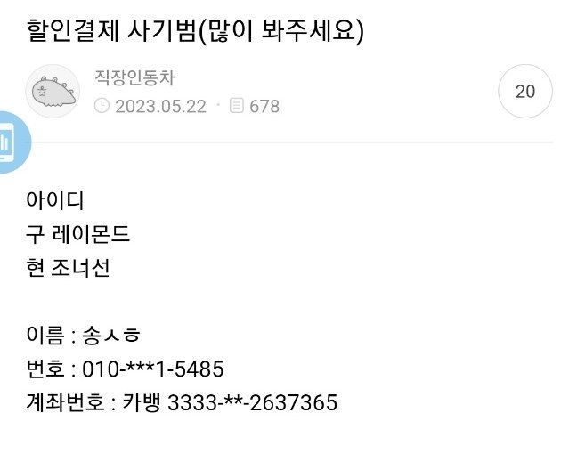 작년부터 여기저기에 같은방법으로 사기를 치고 다녔더라구요