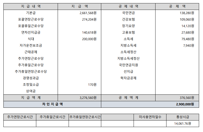 포괄임금제로 다니고 있어요 월급 세후 290받기로 하고 들어왔어요