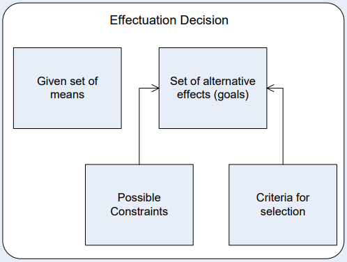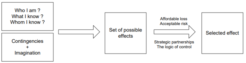 - 기대수익보단 감수할 수 있는 손해중심 : 결정은 미리 계산된 것에 의존하지 않는다. 결정자는 선택의 결과는 확신할 수 없더라도 감당할 수 있는 정도이면 진행한다.