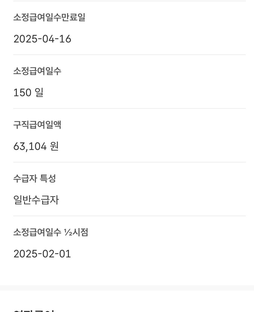 제 취업수첩 확인하니 소정급여일수 1/2시점이 2025-02-01 이라고 나오는데