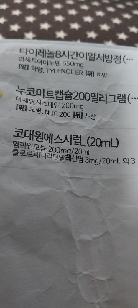 8시경 이 약을 막었는데'타이레놀 먹어도 된다는것만 보고