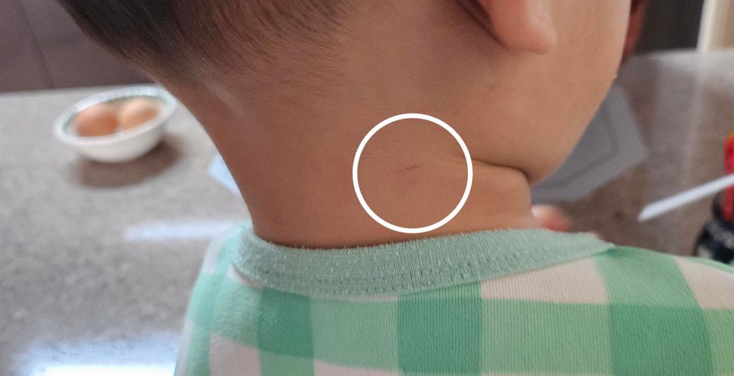 네 사진상 자세히 보이지는 않지만 아이의 목피부에 생긴 자국은 큰 상처로 보이지는 않고 시간이 지남에 따라 점차 옅어져 회복될것으로 판단됩니다